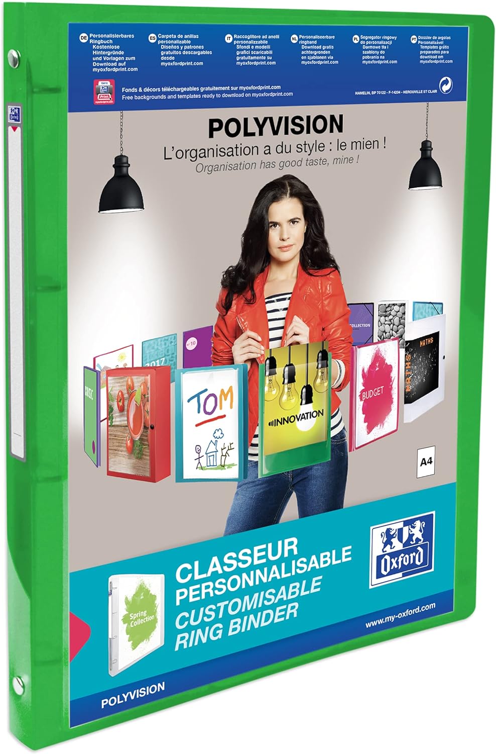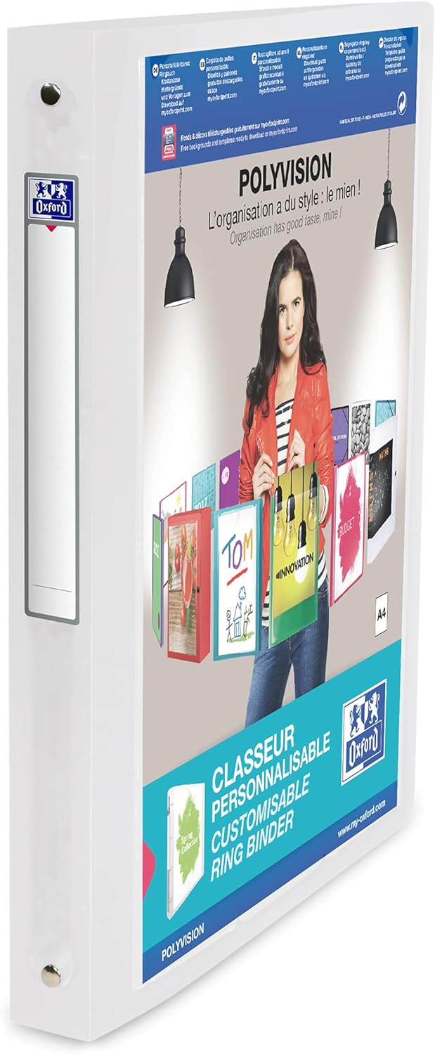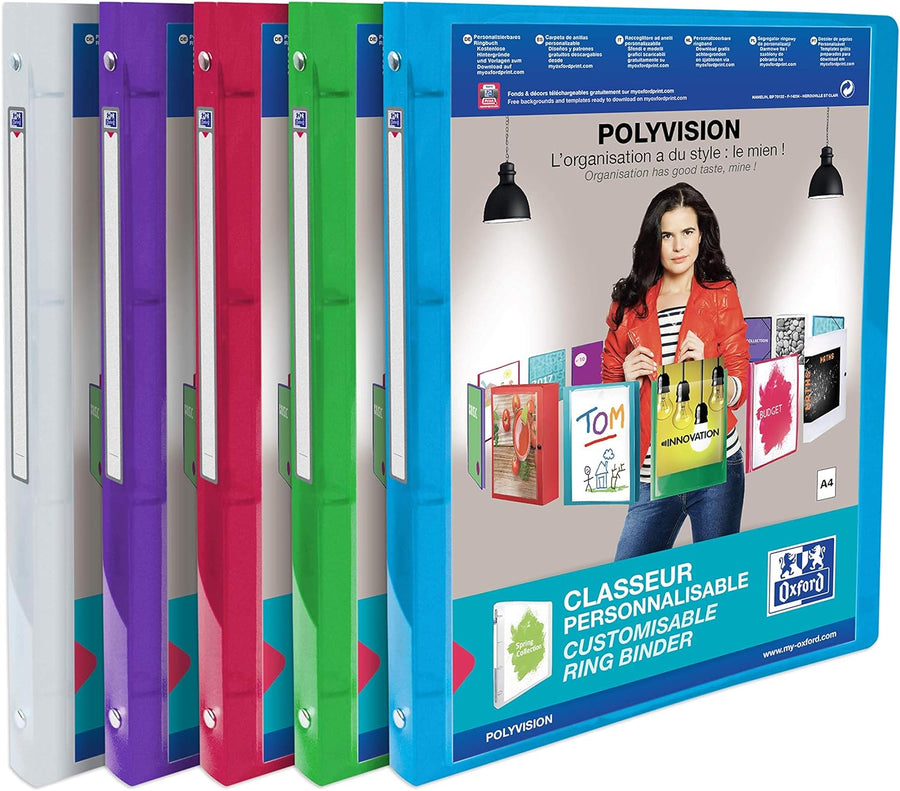 Oxford Ringbuch A4, polyvision, 4 Ringe, 2 cm Rücken, 5 Farben, 12 Stück Farbig Sortiert 12 Stück, F