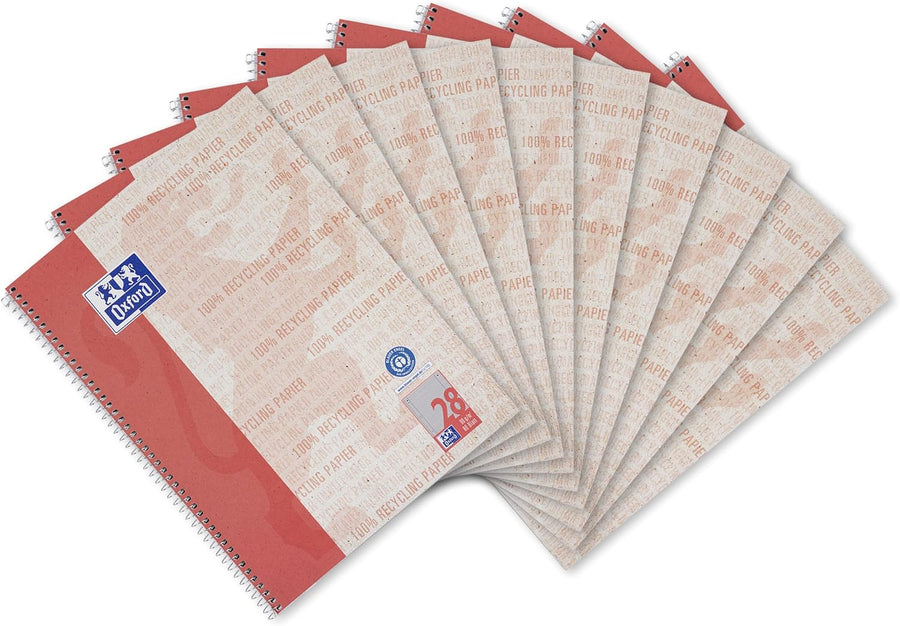 Oxford Recycling Collegeblock A4 liniert mit Doppelrand, 80 Blatt, 10 Stück, A4 liniert mit Doppelra