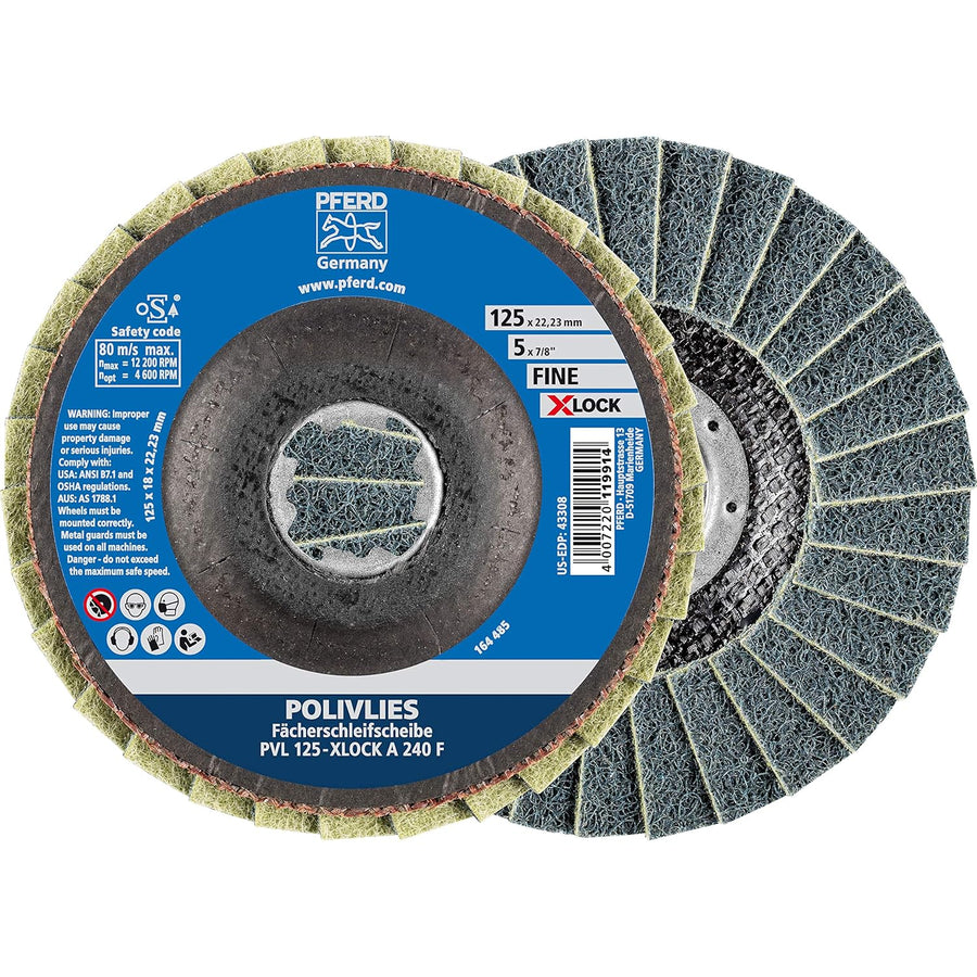 PFERD POLIVLIES-Fächerscheibe, 5 Stück, 125mm, A240, fein, X-LOCK (22,23 mm), 44694213 – für schnell