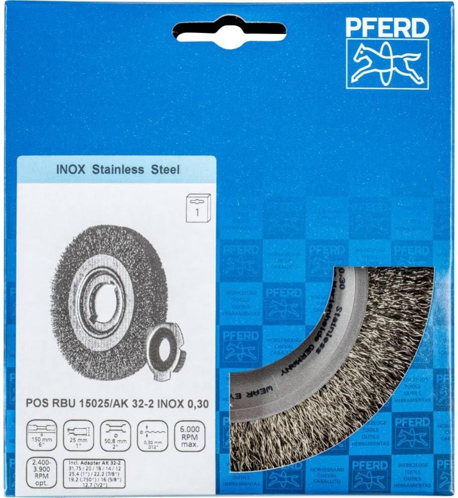 PFERD POS Rundbürste breit ungezopft RBU | Ø 150x25xvariable Bohrung Edelstahl-Draht-Ø 0,30 | 437012