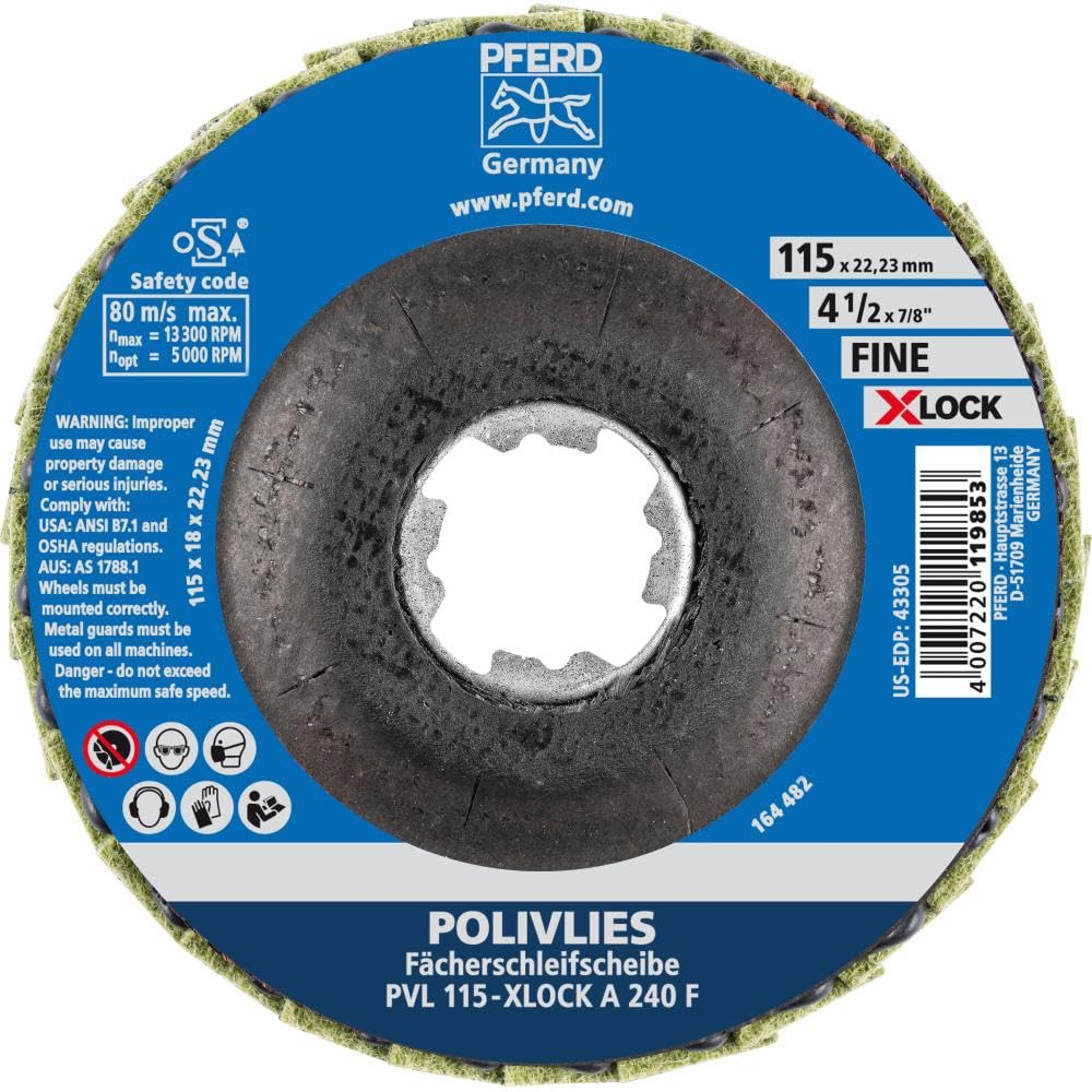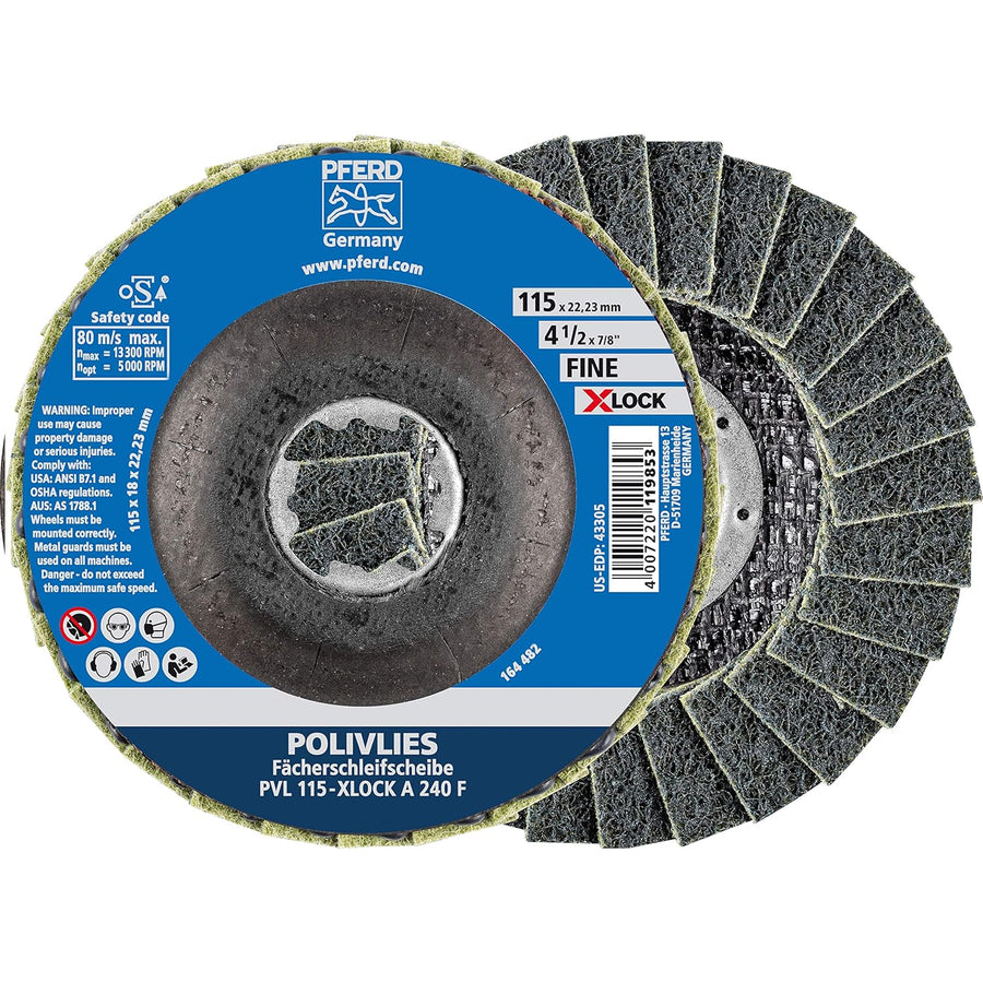 PFERD POLIVLIES-Fächerscheibe, 5 Stück, 115mm, A240, fein, X-LOCK (22,23 mm), 44694203 – für schnell