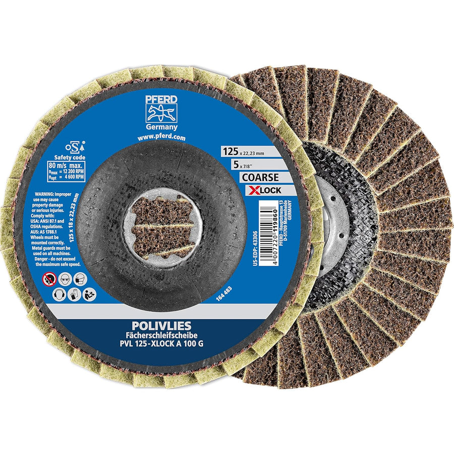 PFERD POLIVLIES-Fächerscheibe, 5 Stück, 125mm, A100, grob, X-LOCK (22,23 mm), 44694211 – für schnell