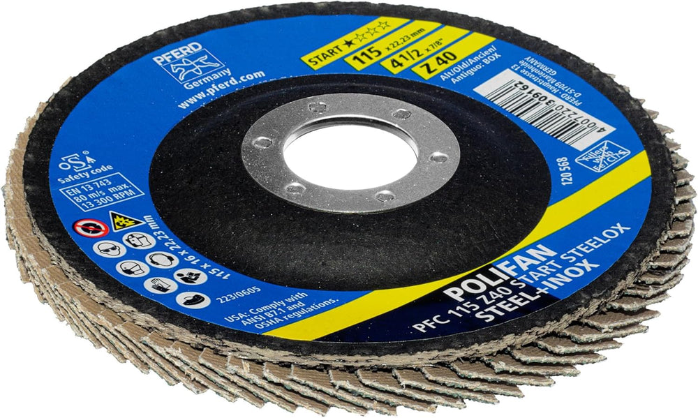 PFERD POLIFAN Fächerscheibe, 10 Stück | PFC 115x22,23mm konisch Z60 Start-Linie START STEELOX | 6930