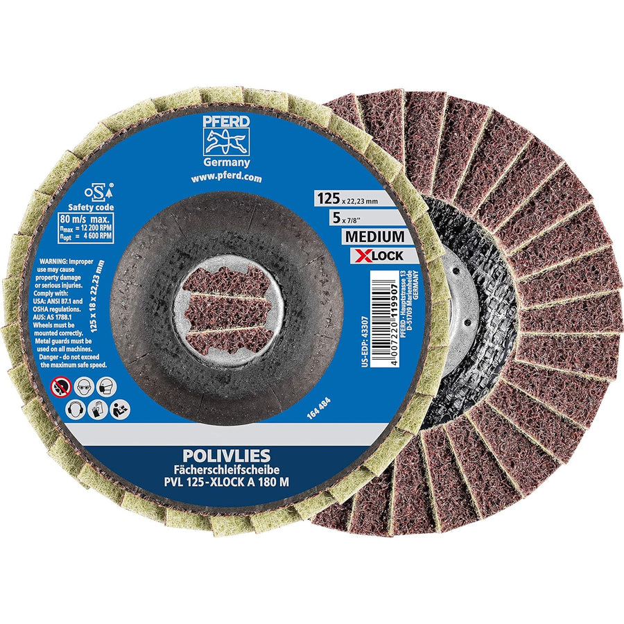 PFERD POLIVLIES-Fächerscheibe, 5 Stück, 125mm, A180, mittel, X-LOCK (22,23 mm), 44694212 – für schne