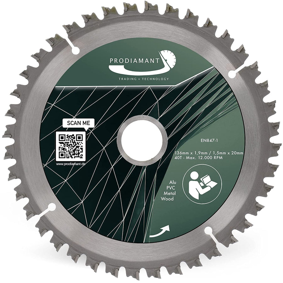 PRODIAMANT Sägeblatt 136mm x 20mm für Holz, Metall & Alu kompatibel mit Tauchsäge, Kappsäge & Kreiss