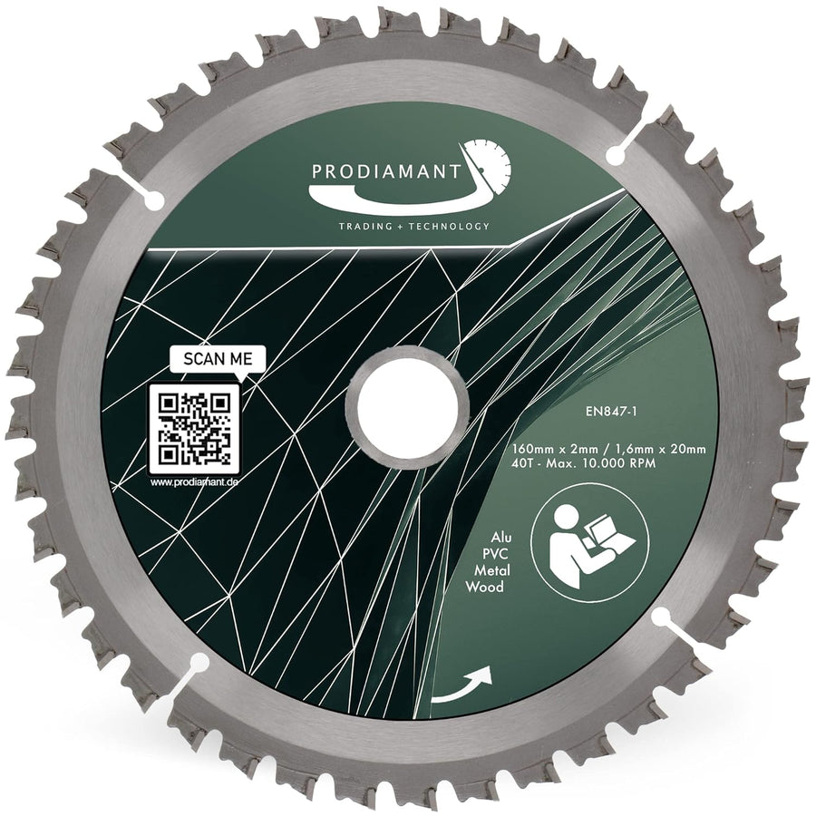 PRODIAMANT Sägeblatt 160mm x 20mm für Holz, Metall & Alu - kompatibel mit Handkreissäge & Kreissäge