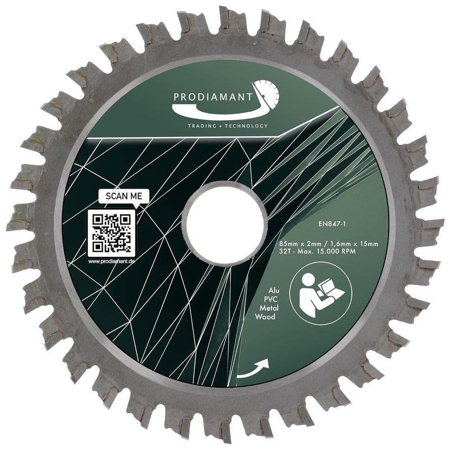 PRODIAMANT Sägeblatt 85mm x 15mm für Holz, Metall & Alu - kompatibel mit Tauchsäge, Kappsäge & Kreis