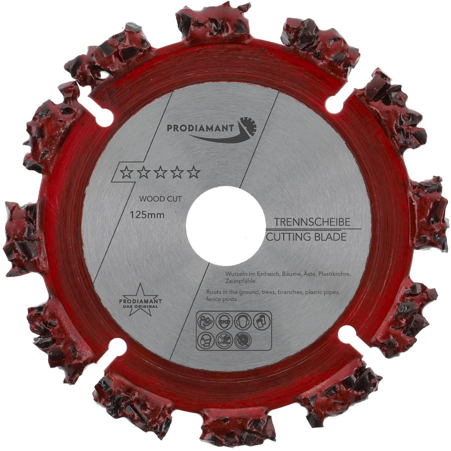 PRODIAMANT Profi Trennscheibe WoodCut 125 mm x 22,2 mm Hartmetalltrennscheibe für Holz, Baumwurzel,