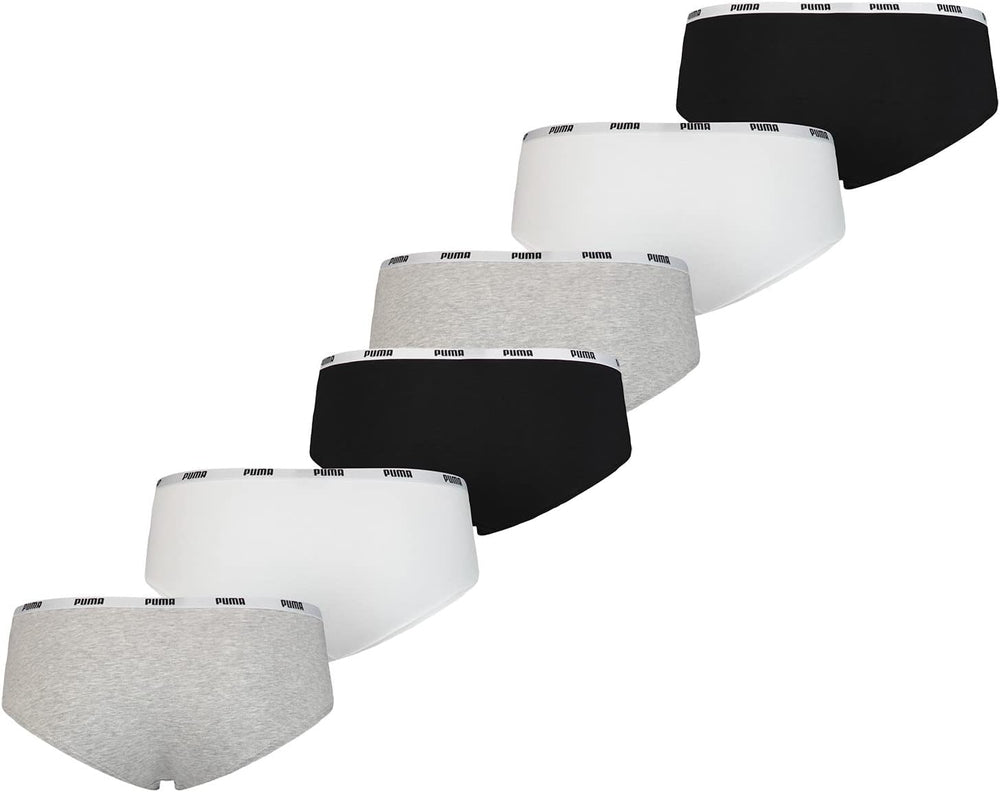 PUMA Damen Iconic Hipster 503007001 6er Pack, Farbe:Mehrfarbig, Wäschegrösse:M, Artikel:-015 White/G