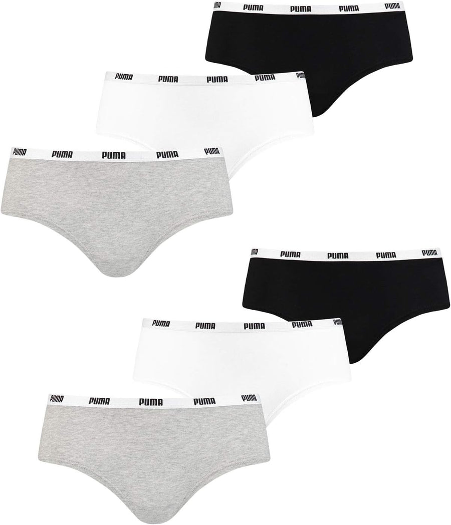 PUMA Damen Hipster Unterwäsche (3er Pack), XS White / Grey / Black