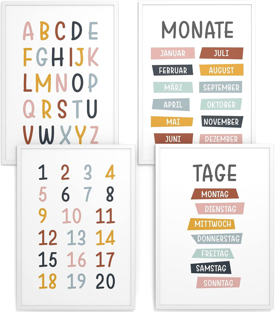 Papierschmiede® Kinderposter 4er Set, B2 (50x70 cm) Wanddeko, Geschenk für Jungen Kinderzimmer Babyz