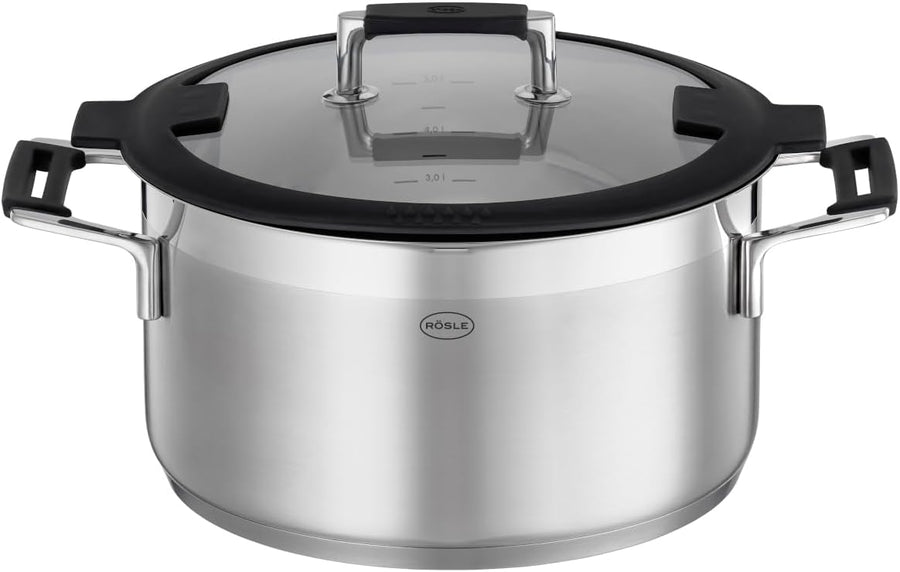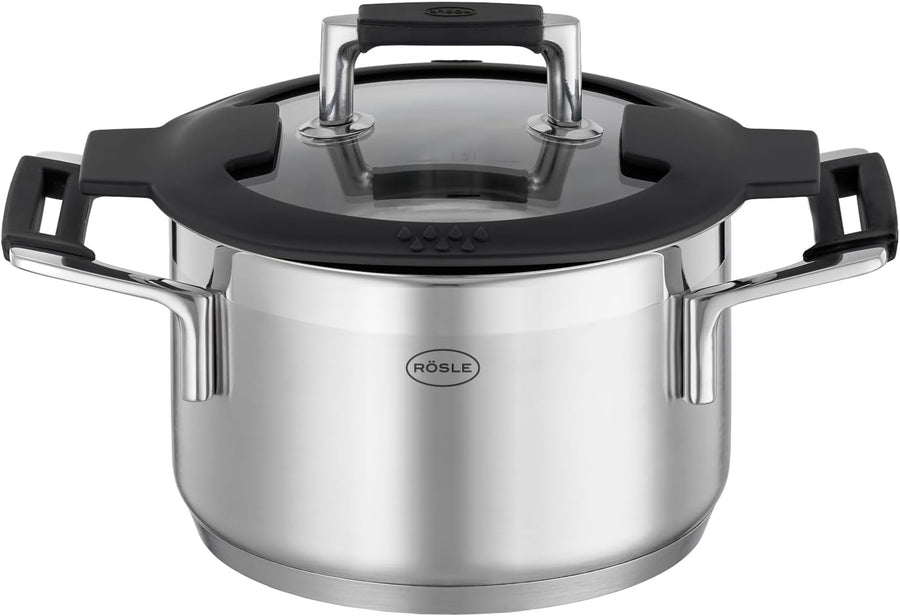 RÖSLE SILENCE PRO Kochtopf, Hochwertiger Universaltopf aus Edelstahl 18/10, 20 cm, Glasdeckel, Innen