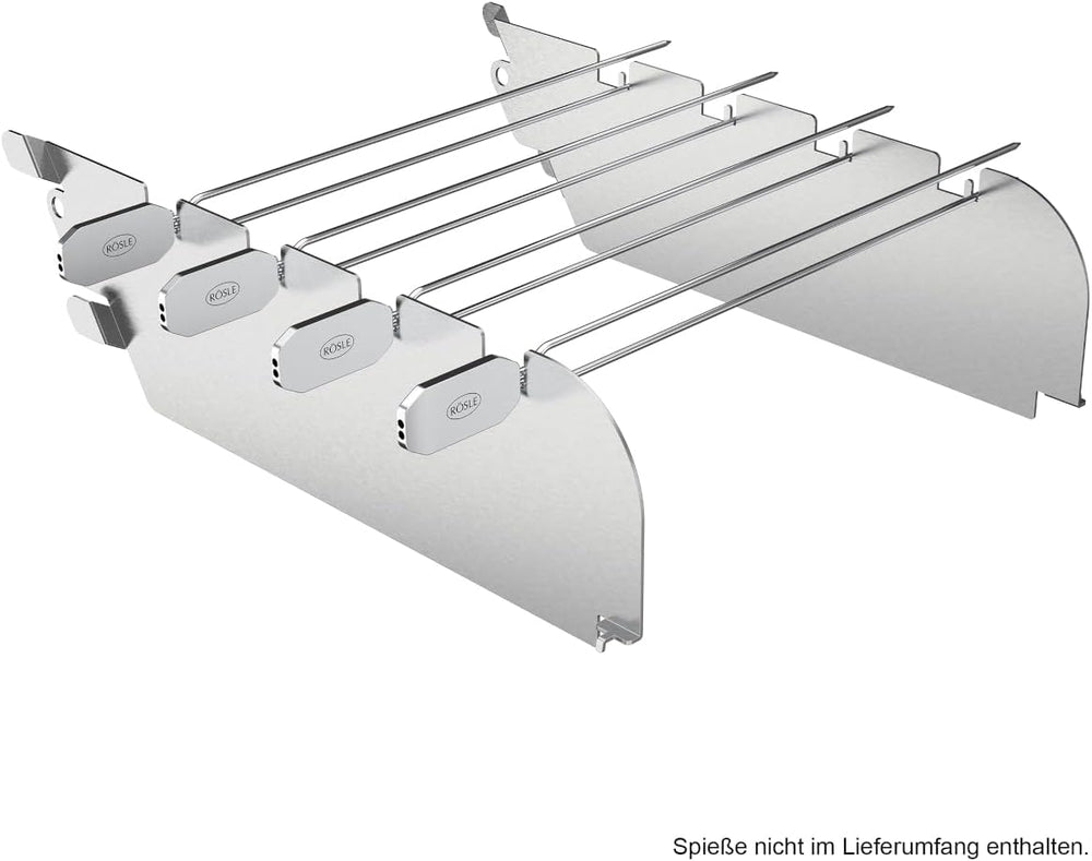 RÖSLE Primezone-Windschutz VIDERO, Hochwertige Halterung für Grillspiesse sowie Wind- und Spritzschu