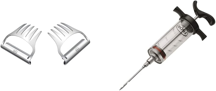 RÖSLE Pulled-Pork-Gabeln Edelstahl & Marinierspritze, Hochwertige Spritze für 50 ml Fleischmarinade,