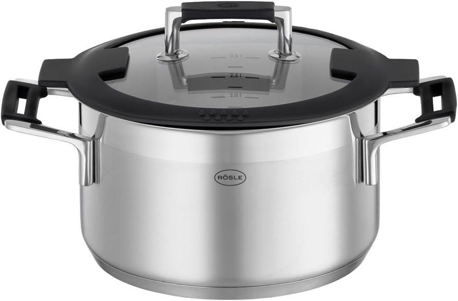 RÖSLE SILENCE PRO Bratentopf, Hochwertiger Universaltopf aus Edelstahl 18/10, 20 cm, Glasdeckel, Inn