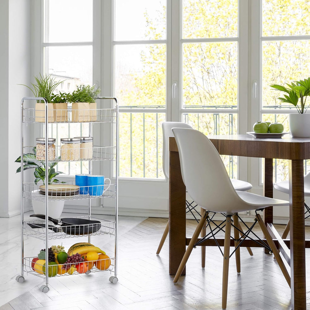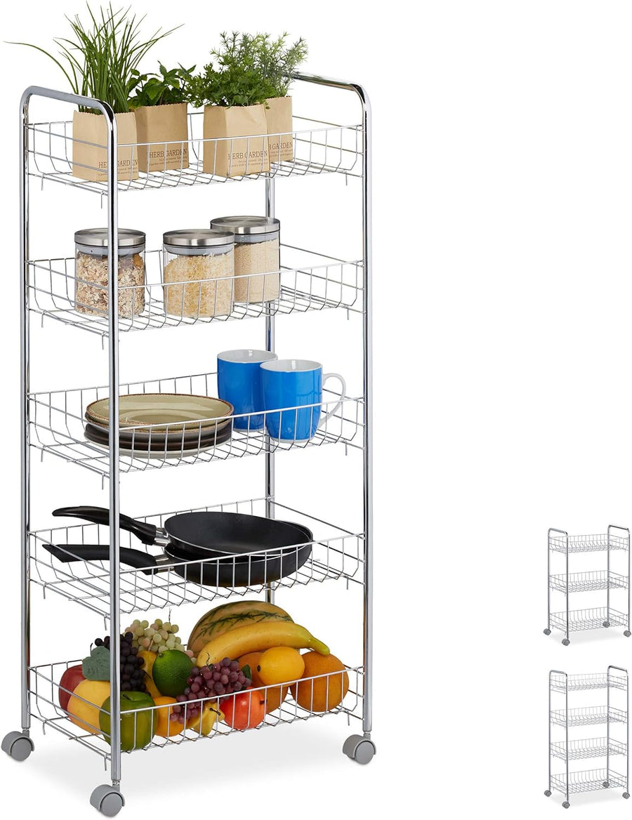Relaxdays 10030061_350 Rollregal, 5 Etagen, 4 Rollen, Allzweckwagen für Küche, Bad, Büro, Rollwagen