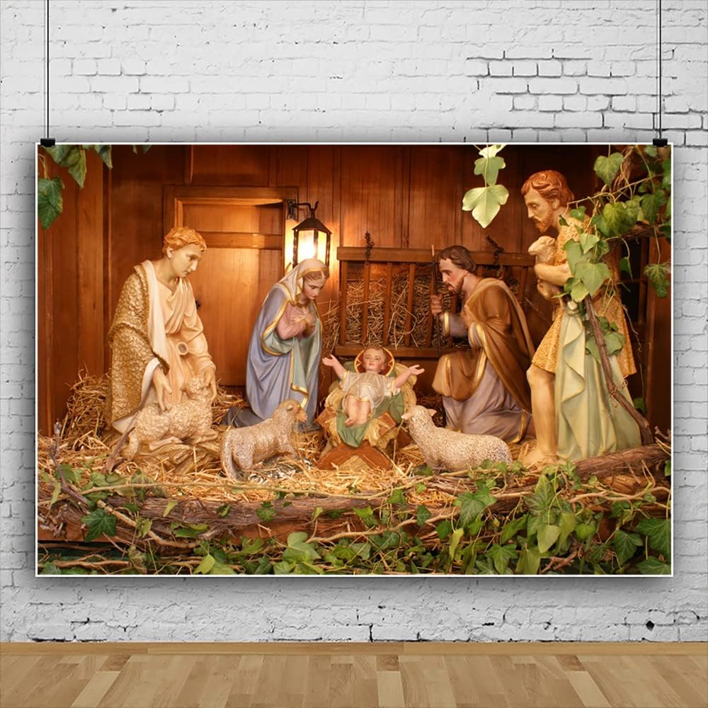 Renaiss 2.7x1.8m Geburt Jesu Hintergrund Krippe Krippe Fotografie Hintergrund Weihnachten Party Deko