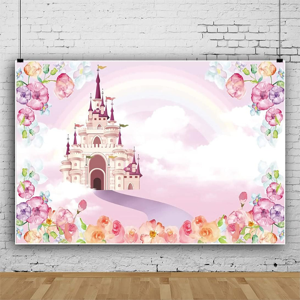Renaiss 2.5x1.8m Rosa Schloss Hintergrund Blumen Regenbogen Wolke Märchen Fotografie Hintergrund Bab