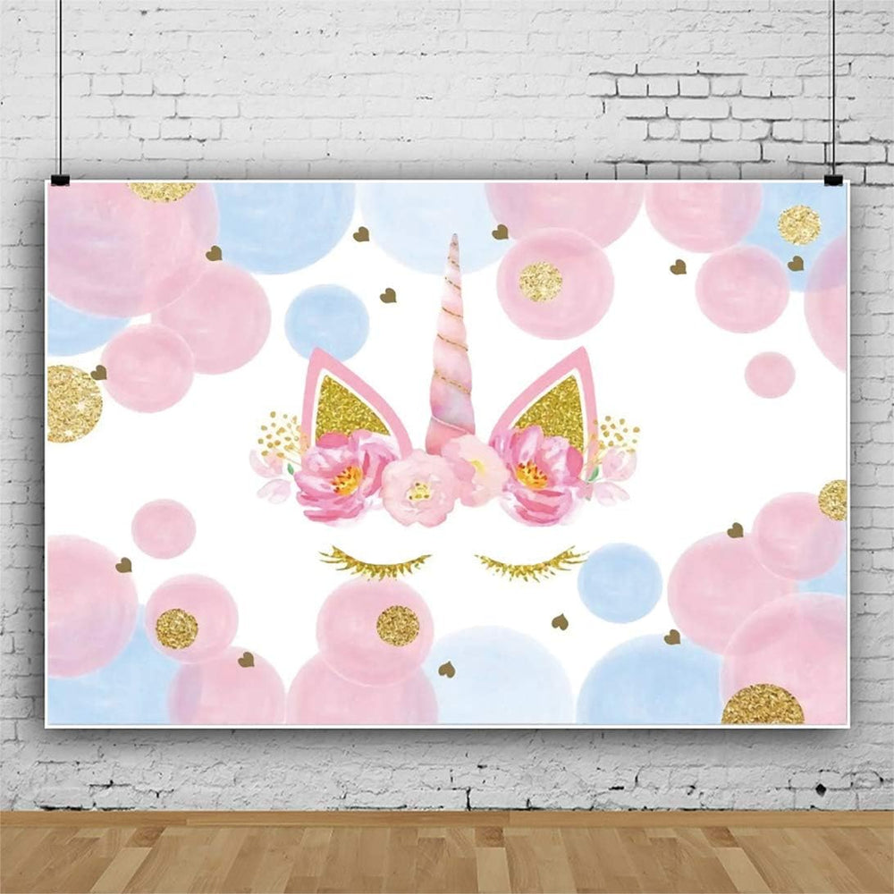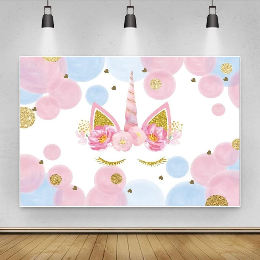 Renaiss 2.7x1.8m Einhorn Geburtstag Hintergrund Gold Glitter Einhorn Blau und Rosa Punkte Fotografie