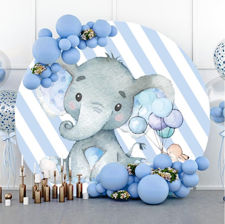 Renaiss 2.3x2.3m Niedlicher Elefant Runder Hintergrund Blau Weiss Streifen Polyester Stoff Fotografi