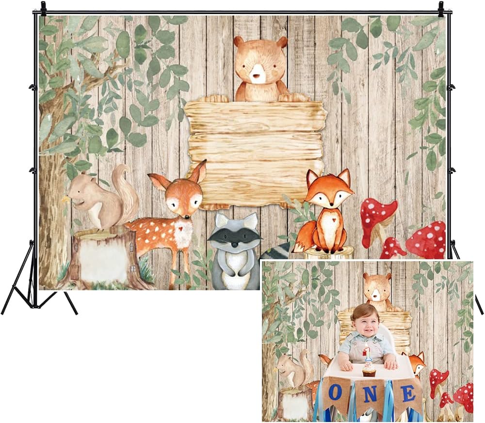 Renaiss 2.7x1.8m Dschungel Tier Holzbrett Hintergrund Kinder Geburtstag Hintergrund für Fotografie J