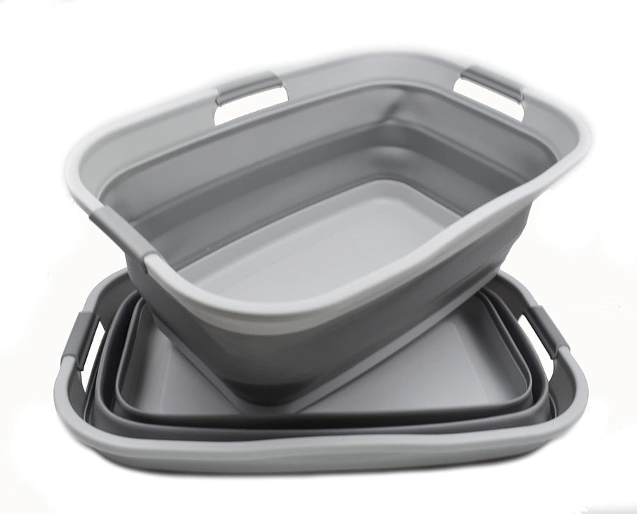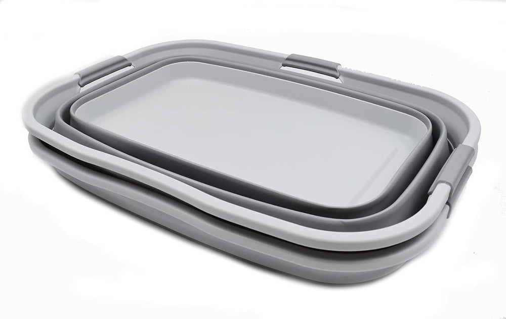 SAMMART Faltbare Wanne aus Kunststoff, 10 l (Grau (2er-Set)), Grau (2er-set)