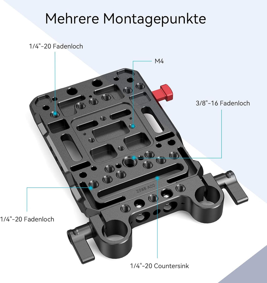 SMALLRIG V Mount Battery Adapter Plate, Adapterplatte Versorgungsverteiler mit 15mm Stangenklemme un