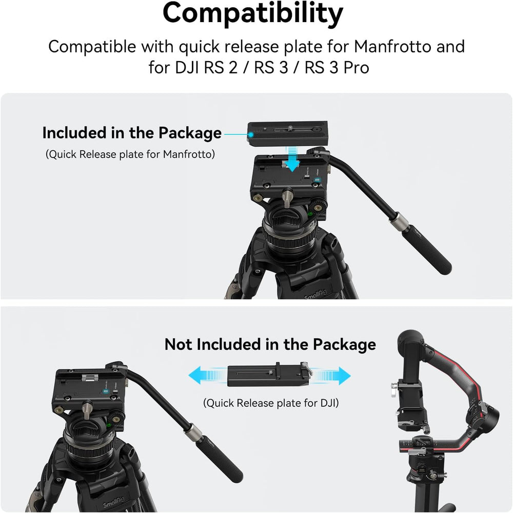 SmallRig Stativ Fluid Videokopf, mit Schnellwechselplatte für Manfrotto und für DJI RS 2 / RS 3 / RS