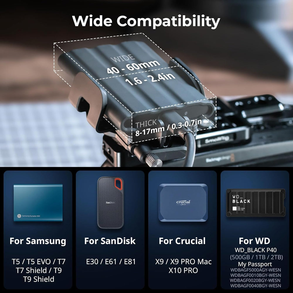 SMALLRIG Universal SSD Halterung mit Kabelklemme für Blitzschuh, 40–60 mm Klemmbreite, SSD-Halterung