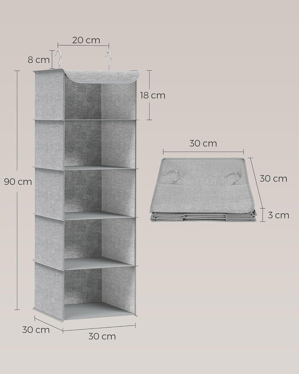 SONGMICS Hängeorganizer, Schrank-Organizer, Hängeregal, Hängeaufbewahrung, faltbar und platzsparend,