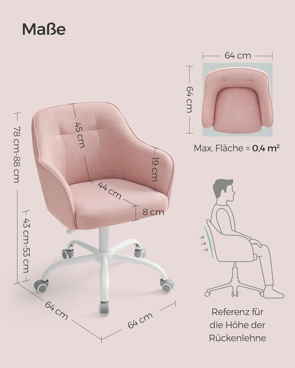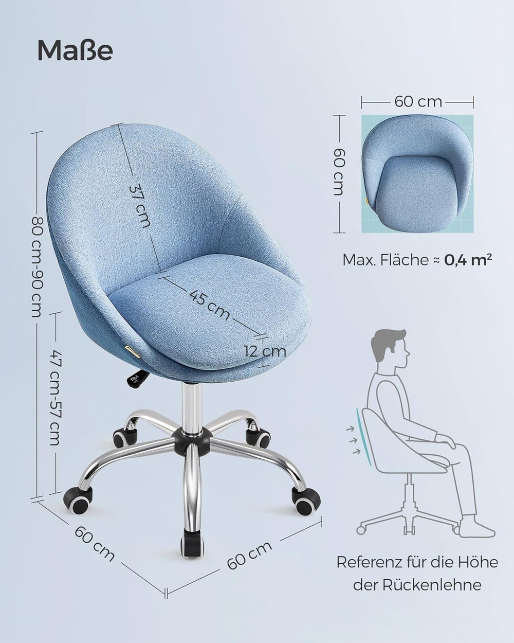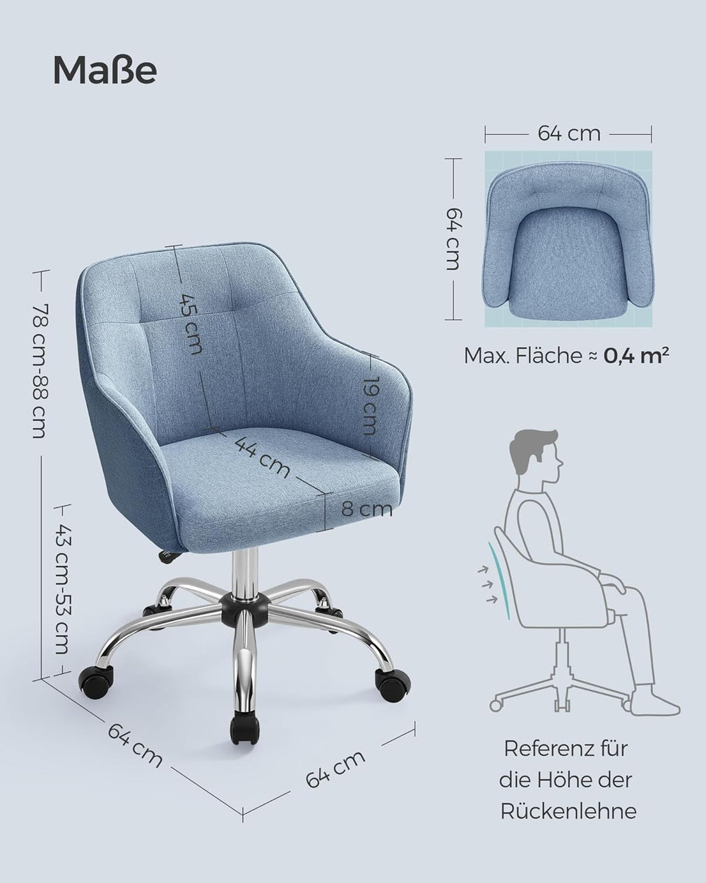 SONGMICS Homeoffice Stuhl, Drehstuhl, Schreibtischstuhl, Schaumstoffpolsterung, höhenverstellbar, fü