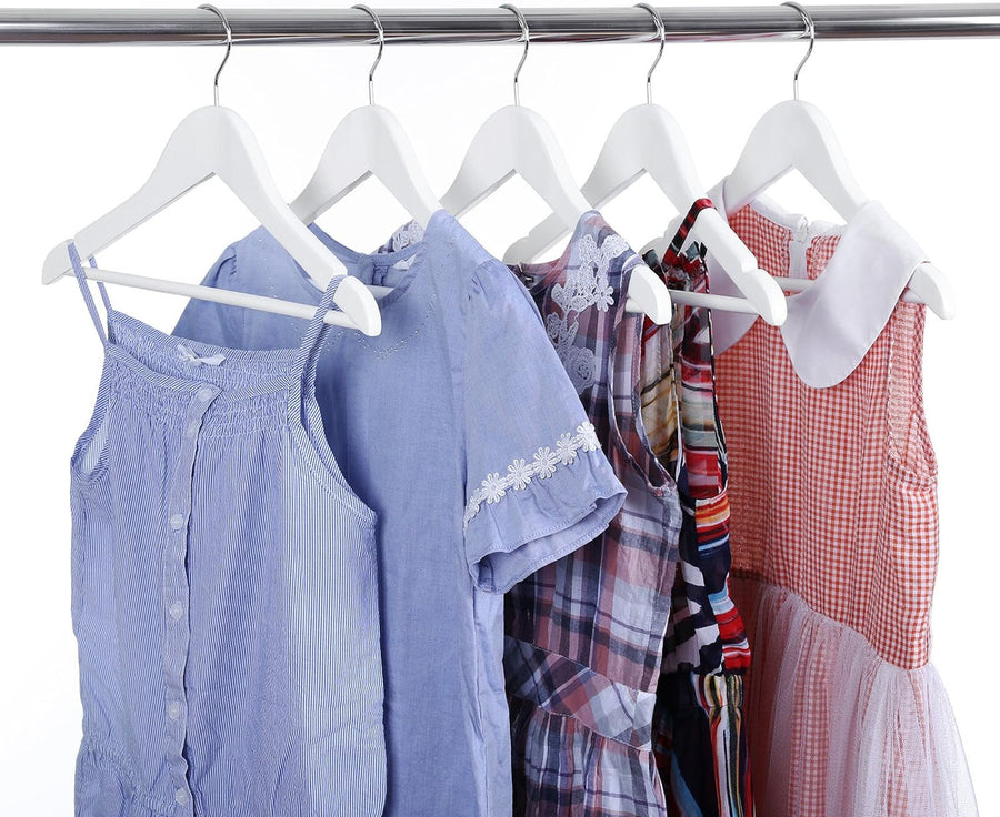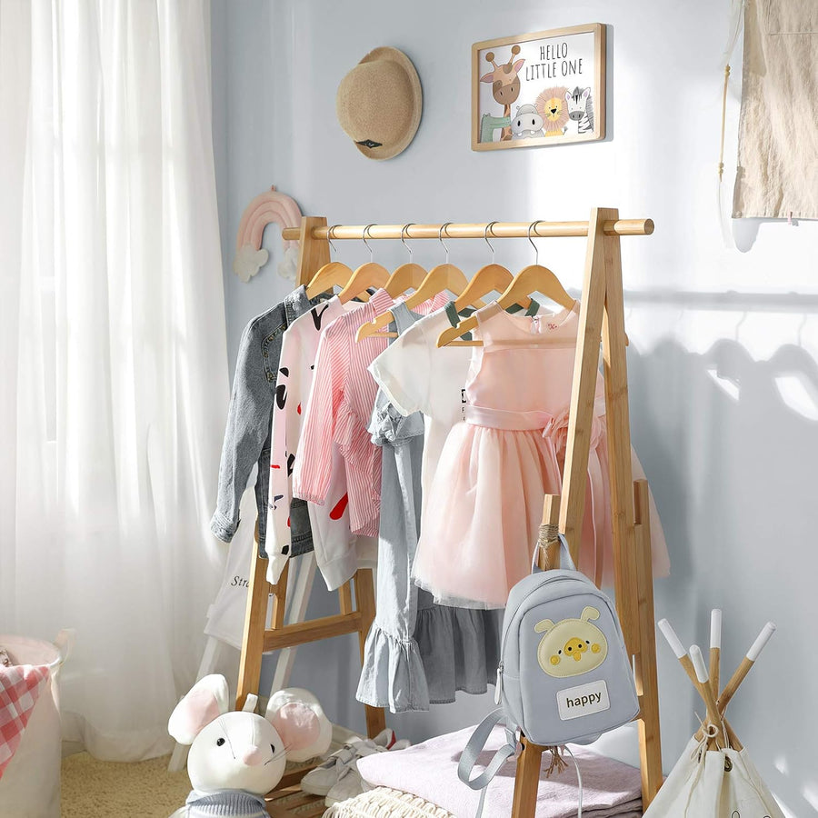 SONGMICS Kinder-Kleiderbügel aus Massivholz, 10 Stück, mit Aufhängeleiste, rutschfest, Kerben, drehb