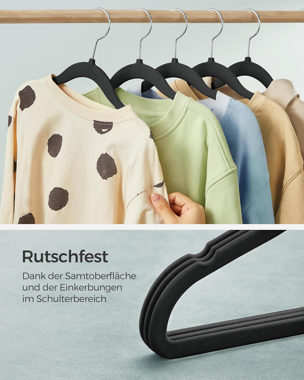 SONGMICS Kinderkleiderbügel, 50er Set Kleiderbügel Kinder, Baby-Kleiderbügel, Bügel Samt, 360° drehb