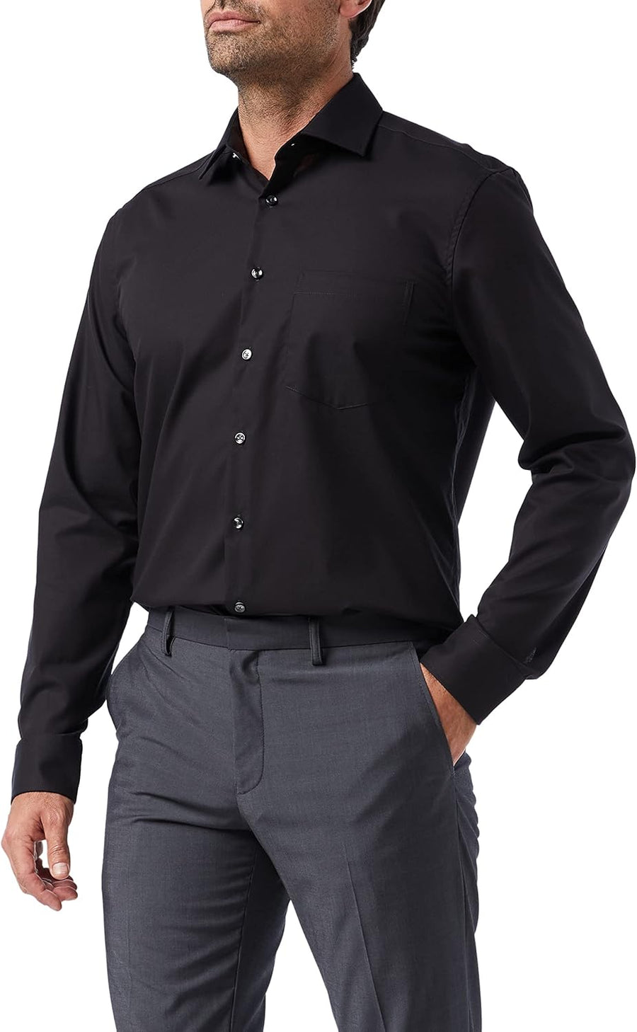 Seidensticker Herren Men Regular Longsleeve Cotton Business Shirt 38 Schwarz(001000), 38 Schwarz(001