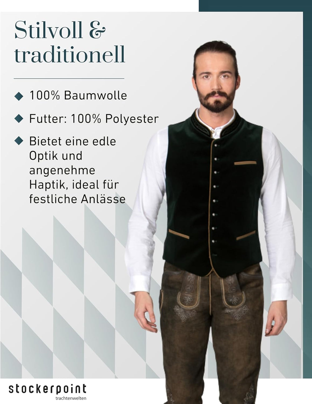 Stockerpoint Herren Trachtenweste Calzado 60 Grün (Tanne), 60 Grün (Tanne)