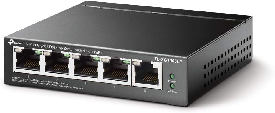 TP-Link TL-SG1005LP 5-Port Gigabit PoE Switch mit 4 PoE+ Ports (40 Watt, geschirmte RJ-45 Ports,IEEE