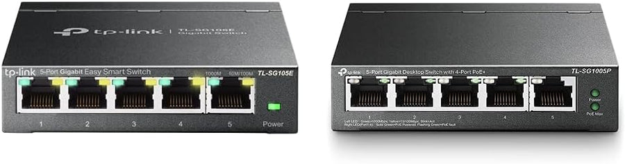 TP-Link TL-SG105E 5-Ports Gigabit Easy Smart Managed Netzwerk Switch mit TL-SG1005P 5-Port Gigabit L