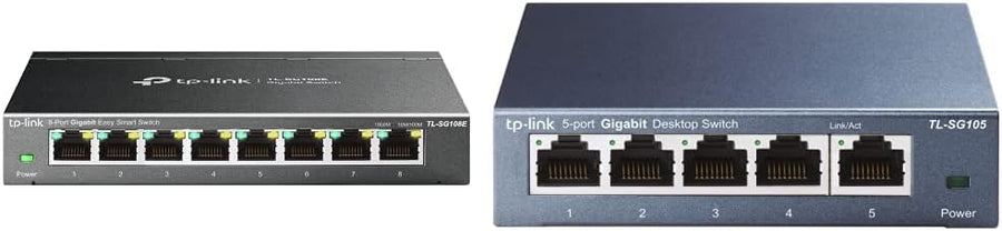 TP-Link TL-SG108E Managed Switch 8 Port Gigabit Ethernet LAN Switch schwarz & TL-SG105 5-Ports Gigab