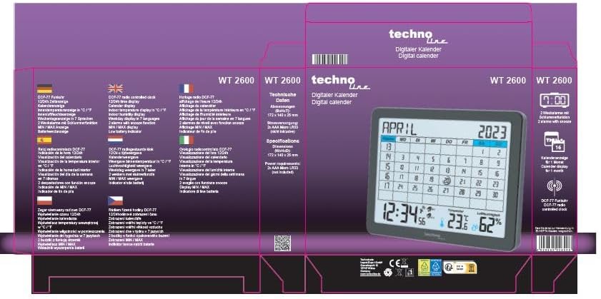 WT2600 Tischkalender, Temperaturanzeige, Luftfeuchteanzeige, Min/Max Anzeige, 17 x 14 cm, schwarz