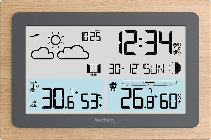 WS6780-2 in 1 Funkuhr und Funkwetterstation in einem, Innen- und Ausséntemperatur, Luftfeuchtigkeit,