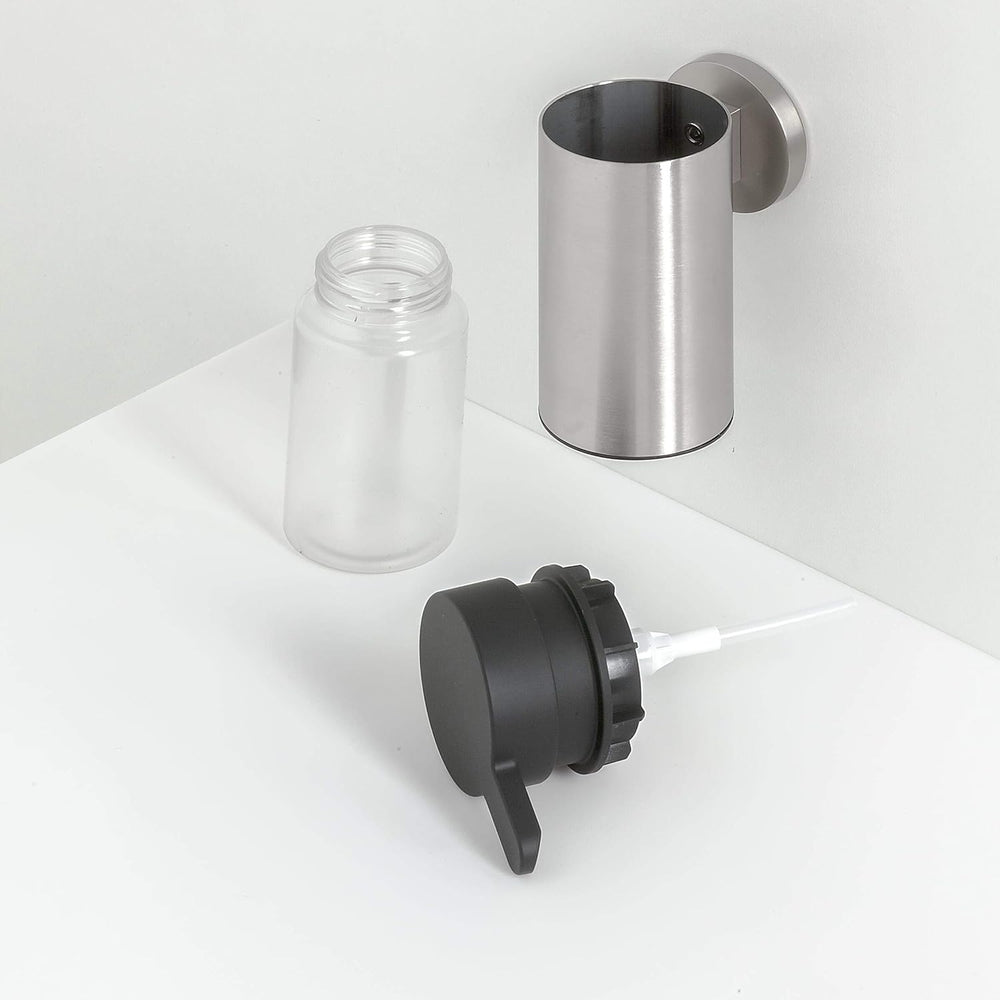 Tiger Noon Seifenspender klein zur Wandmontage, Edelstahl gebürstet, mit herausnehmbaren Einsatz, B