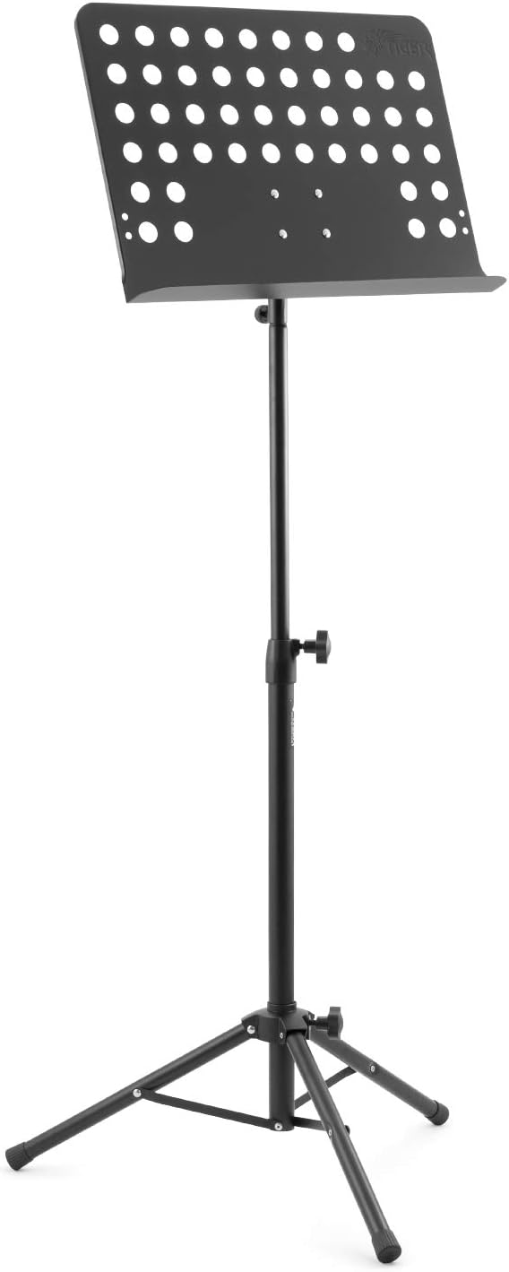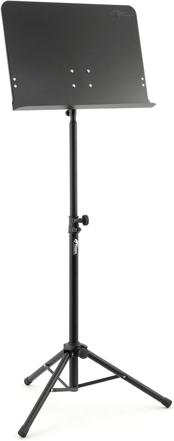 TIGER MUS7-BK Orchester-Notenpult, Metallkonstruktion, voll verstellbarer Notenständer, Schwarz Schw