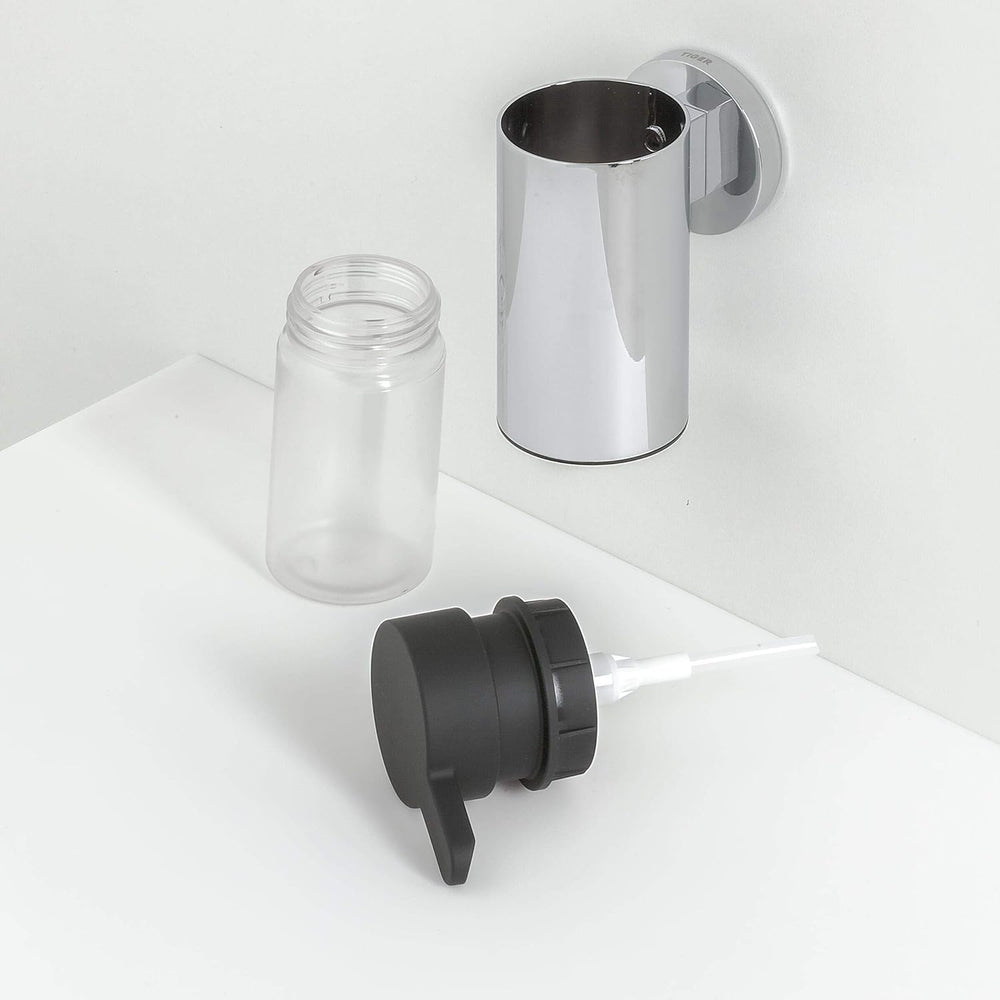 Tiger Noon Seifenspender klein zur Wandmontage, Edelstahl verchromt, mit herausnehmbaren Einsatz, B