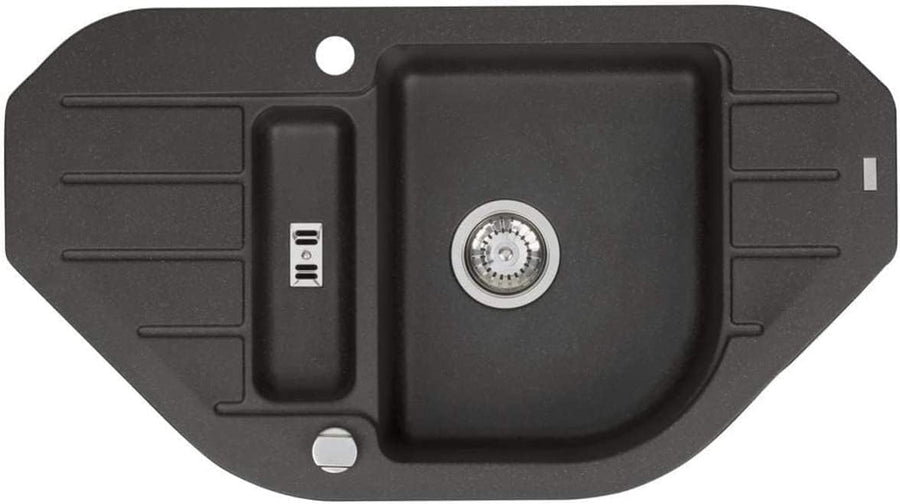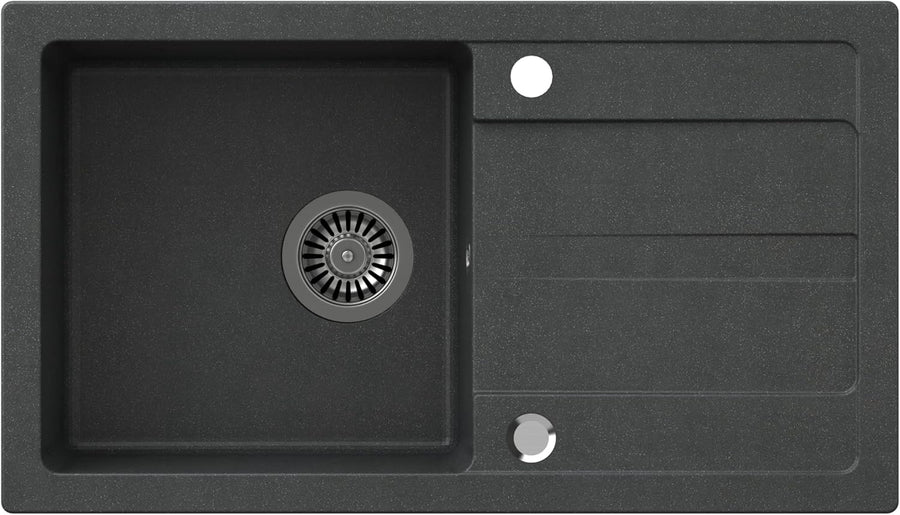 VBChome Spülbecken 90x50 cm Schwarz Granit 1,5 Becken 1,5 Abtropffläche Einbauspüle gesprenelt Ecksp