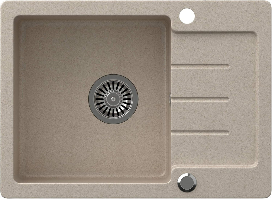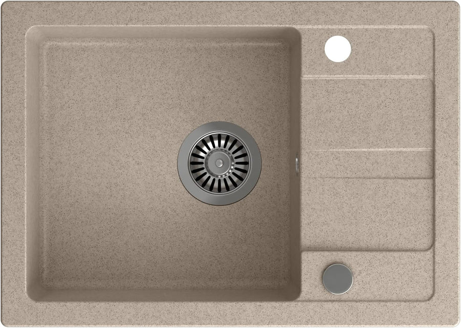 VBChome Spülbecken Beige 62 x 44 cm Granit Einzelbecken Einbauspüle Abtroffläche Gesprenkelt Reversi
