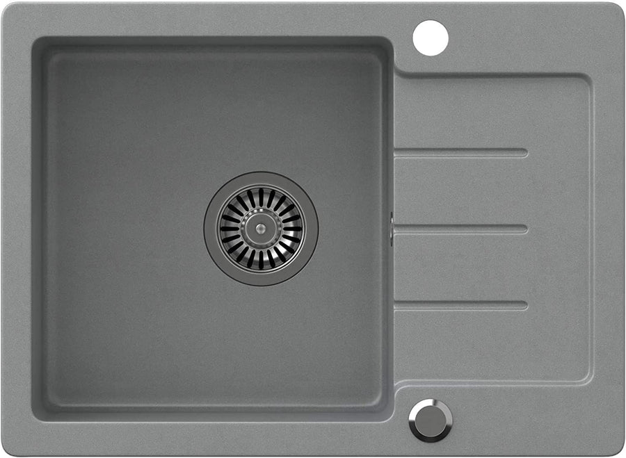 VBChome Spülbecken 60 x 44 cm Einzelbecken Grau Granit Rechteckig Reversibel Einbauspüle Gesprenkelt