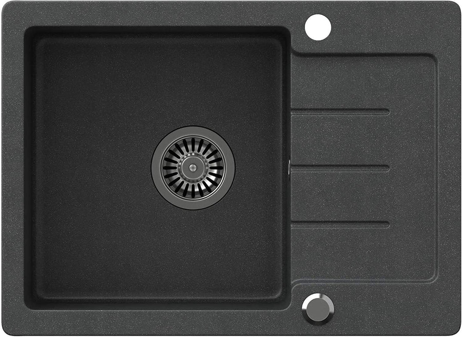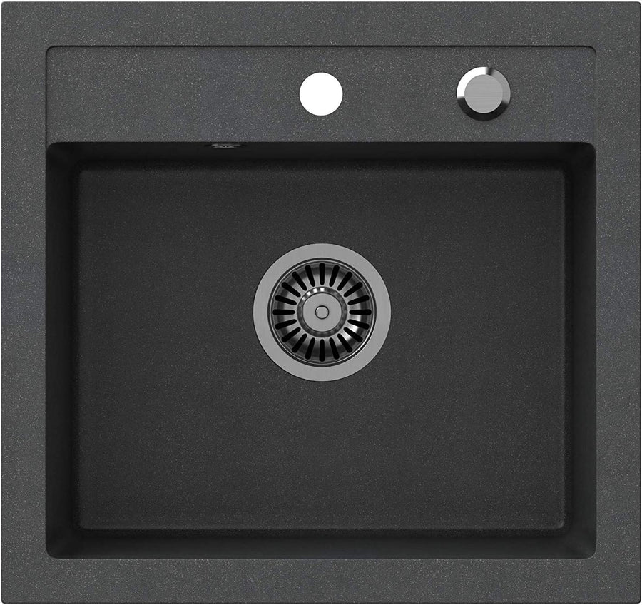 VBChome Schwarz 62 x 44 cm Granit Einzelbecken Einbauspüle Abtroffläche gesprenkelt reversibel Verbu