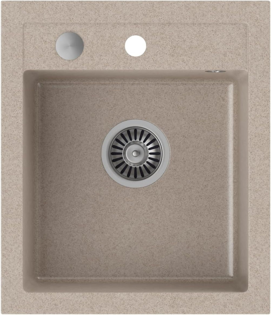 VBChome Spülbecken 50 x 47 cm Beige Spüle Einzelbecken Küche Einbauspüle Verbundspüle Küchenspüle ge