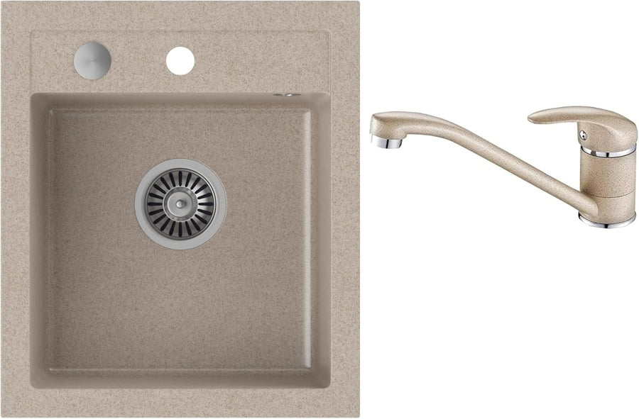 VBChome Spülbecken + Armatur 50 x 47 cm Beige Spüle Einzelbecken Küche Einbauspüle Verbundspüle Küch