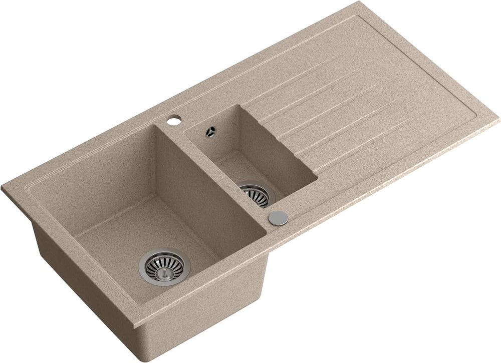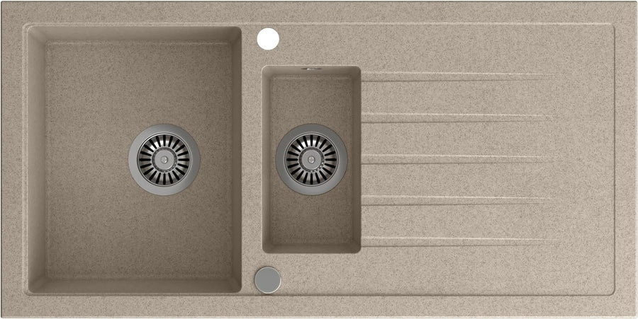 VBChome Spülbecken 100 x 50 cm Einzelbecken Beige Granit Rechteckig Reversibel Einbauspüle Gesprenke